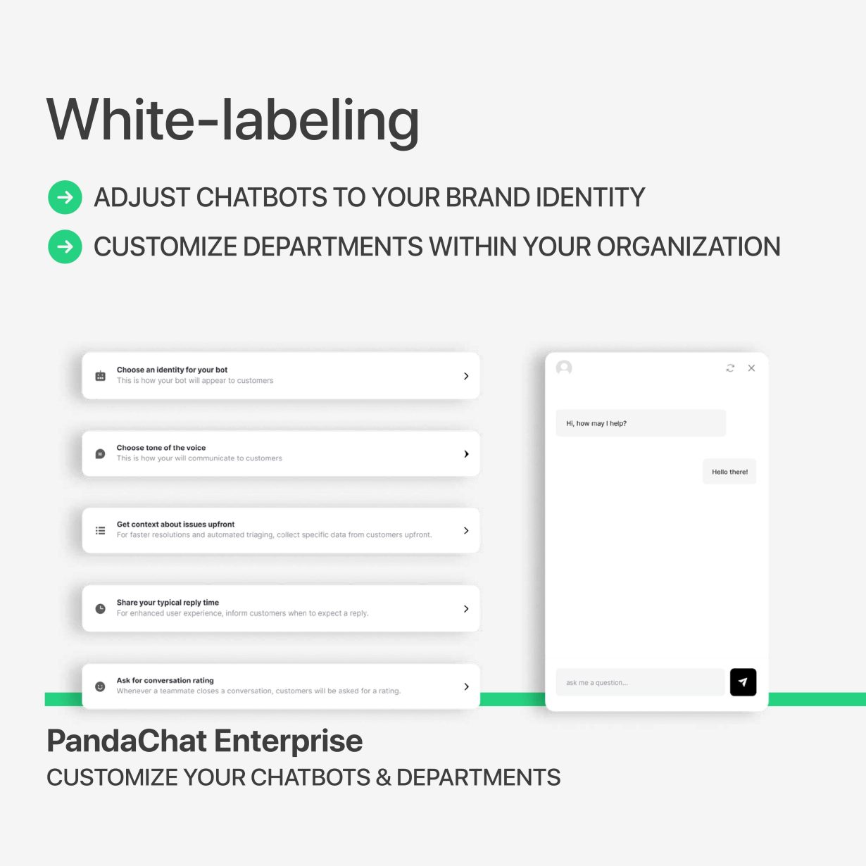 Whether you are a startup building your brand or an established company looking to reinforce it, PandaChat gives you the flexibility to elevate your brand presence.